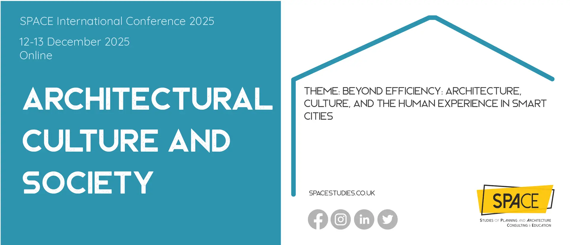 The 8th of the “SPACE International Conference 2025 on Architectural Culture and Society” will be held online 12-13 December 2025, online, running in parallel with the City Planning and Urban Design Conference. The theme of this year’s Conference is “Beyond Efficiency: Architecture, Culture, and the Human Experience in Smart Cities“.
