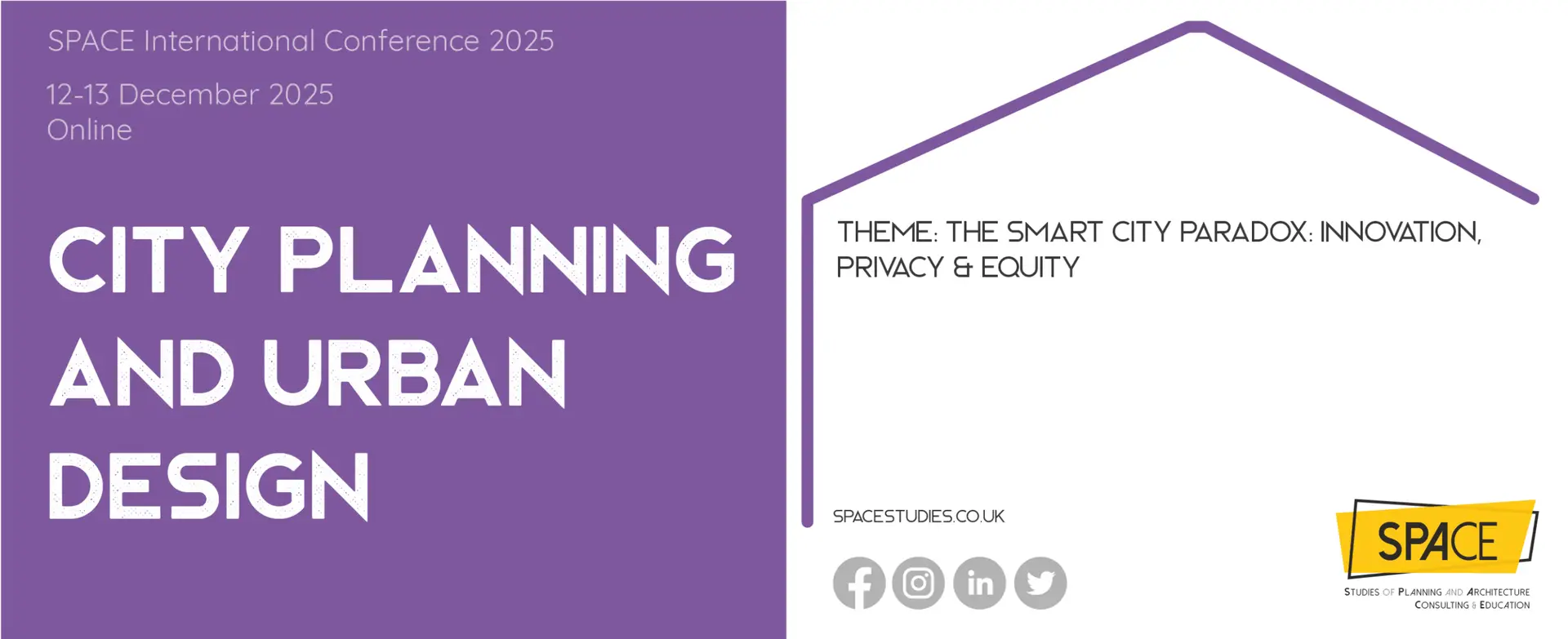 The 7th of the “SPACE International Conference 2025 on City Planning and Urban Design” will be held on 12-13 December 2025, online. The theme of the Conference is “The Smart City Paradox: Innovation, Privacy & Equity”, and the conference will critically examine the complexities and contradictions of smart cities. While technology-driven urban environments promise efficiency, sustainability, and innovation, they also raise critical questions about privacy, data governance, and social equity.