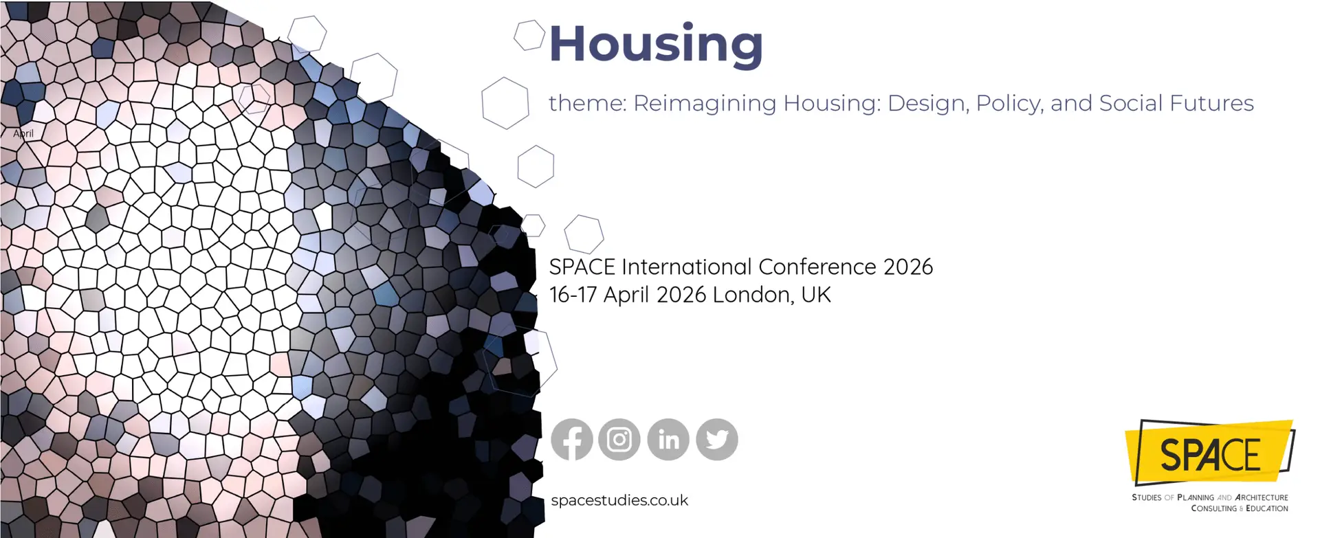 The SPACE International Conference 2026 on Housing will be held on 16–17 April 2026, in a hybrid format combining in-person participation in London and online attendance. The conference theme, “Reimagining Housing: Design, Policy, and Social Futures,” invites a critical and interdisciplinary examination of how housing shapes — and is shaped by — the complex relationships between design, governance, economy, and society.